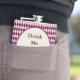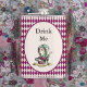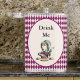 Add a bit of Alice in Wonderland whimsy with this Mad Hatter "Drink Me" design. It features the text "Drink Me" above the Mad Hatter in magenta and teal in the centre surrounded by a magenta and cream harlequin chequerboard. This design adds a bit of storybook whimsy and humour.
