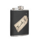 The flask itself is fine. It’s a cheap flask, obviously bought in bulk, however am prepared to overlook that. Given that it is a personalized item, I would have liked to have seen gift boxing instead of the generic packaging. Terrible printing, and/or quality. It’s a cheap, tacky vinyl. It is not cut straight and is also applied in a way that it is overhanging the bottom, causing the glue to catch on items and it will eventually roll and tear, damaging the wrap.