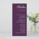 Presenting "The Drinks" Wedding Menu from the Fuchsia Enchantment: Watercolor Wedding Suite, a sophisticated and personalised guide for your celebration. The front of the menu features a deep burgundy background adorned with a curated selection of wines, cocktails, beers, and spirits, ensuring a delightful experience for your guests. The elegant header "The Drinks" sets the tone, creating a tasteful presentation. Beneath the drink selections, there is a designated space for couples' names and the date, adding a personalised touch to this essential wedding detail. This touch of customisation allows the menu to serve as a memorable keepsake for your special day.