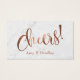 Offer your guests some complementary libations with these elegant drink tickets. On one side you read "this one is on us" and "Good for One Adult Beverage" and on the other side is "Cheers!" and a template place holder for your names. Non-editable text graphic overlays are rendered in a beautiful calligraphy script font with swirls and flourishes. To this text I've added a trendy faux copper foil effect. Other text appears in a versatile serif font in a complementary colour; it can be edited if you prefer. The background is an image depicting of a subtle white and grey marble surface. Please do not hesitate to reach out if you have requests or need customising assistance. // 57 //