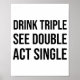 Drink Triple See Double Act Single - Funny Drinkin Poster