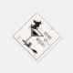 The perfect cocktail party napkins for a girl's night during the Halloween season! These feature a martini glass with a witch "riding" the brim of the glass in silhouette. A black cat and broom are at the base of the glass. Fun font reads "Drink up witches". The design is placed on a celestial orange and white background.