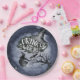 This cute "Drink up witches" halloween paper plate features a flying witch on a broom, spooky tree, bat, ghost, and grave/tomb on a night sky background. Personalise it for your needs. You can find matching products at my store.