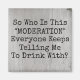 A funny magnet with the message. "So who is this "MODERATION" everyone keeps telling me to drink with?"