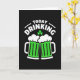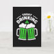 This card features two stylized beer mugs on a deep black background, tilted toward each other like close friends clinking in mid-cheer. Each mug is filled with shamrock-green beer 💚 and capped with thick, cloudlike white foam that spills up in rounded shapes. The mugs are outlined in white, giving them a crisp edge while keeping the scene simple and easy to read. Across the top, the words “TODAY DRINKING” sit in all-caps white lettering, arched so it frames the image like a banner. Between the two words, a small green three-leaf shamrock ☘️ is centered above the mugs, acting like a tiny meeting point that ties them together. The tight spacing and mirrored angles of the mugs create a cozy, together-at-the-bar feel, as if the pair is sharing a laugh without needing to look away. The green liquid, white foam, and white outlines stand out sharply against the black field, and the shamrock sits neatly above the rims, centered under the arched text.