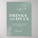 Drinks Are On Us Boho Sage Green Wedding Sign