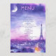 From the Amour Éternel à la Parisienne collection, this flat 5" x 7" drinks menu card brings moonlit elegance to your celebration. The front features a romantic watercolor illustration of the Eiffel Tower and glowing Parisian rooftops, bathed in hues of lavender, blush, and twilight blue. Refined script and serif fonts highlight your curated drink offerings with timeless charm.