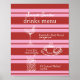 Drinks Menu Secret Santa Cabana Pink Stripe Preppy Poster