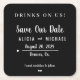 Drinks on us simple script wedding save the date square paper coaster