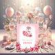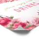 This is the Drinks sign for the baby shower. The design is a darling pink flamingo, ballerina, momma and baby girl, with pink rose floral wreaths on head and larger rose bouquet beside bodies. Soft pink background with cute golden triangles. White centre with pink rose florals at bottom edge.