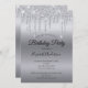 Dripping Glitter Silver Personalised Birthday Invitation