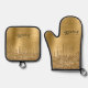 Customise the modern handwritten style script to create your own personalised gold pot holder and oven mitt set for her kitchen.
