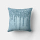 Dripping Ice Glitter | Blue Faux Sparkle Metallic Cushion