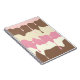 This notebook features a cute design of dripping ice cream: strawberry, chocolate and vanilla.