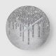 Dripping Silvery Glitter | Platinum Faux Metallic Round Clock