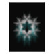 A grey abstract snowflake with six double-points on a black background, that looks like it's dripping or melting into cyan-coloured water.
