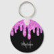 Dripping Sparkles Glitter Pink Black Monogram Key Ring