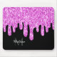 Dripping Sparkles Glitter Pink Black Monogram Mouse Pad