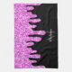 Dripping Sparkles Glitter Pink Black Monogram Tea Towel