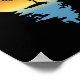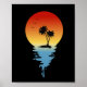 A visually striking digital illustration of a tropical island with coconut trees silhouetted against a glowing sunset. The design features a rich gradient of warm hues transitioning into cool blues, creating a mesmerising reflection that appears to drip downward, blending surrealism with minimalistic aesthetics. Birds soaring in the sky enhance the tranquil yet artistic vibe, making this piece perfect for modern decor, apparel, or digital prints. The presence of the sea surrounding the island adds depth and a serene tropical feel.
