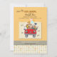 A gender-neutral, drive-by baby shower invitation featuring a red car driven by a stork, a happy female passenger and a variety of animals. (<a href='https://www.freepik.com/free-photos-vectors/flower'>Flower vector created by freepik - www.freepik.com</a>). (<a href='https://www.freepik.com/free-photos-vectors/invitation'>Invitation vector created by balasoiu - www.freepik.com</a>).