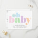 Celebrate the mother-to-be from a safe distance with a drive by baby shower. This minimal modern gender-neutral virtual baby shower invitation postcard features "oh baby" in a rainbow of pastel teal, blue, green, pink, purple and orange bold typography. You can easily personalise the drive by shower details.