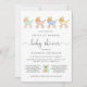 When everyone can't be together, celebrate the modern mother-to-be from a safe distance with a drive by baby shower parade. This gender neutral shower invite features a parade of pastel mint green, blue, pink, yellow and gold retro baby carriage watercolors. "baby shower" is written in a stylish contemporary script. A small mint green and gold teddy bear watercolor at the bottom of the invitation separates party details. You can easily personalise the drive by shower instructions, including where and when to drive by, areas for a gift drop off and snacks, safety precautions, whether the mama-to-be will open the gifts then or host a live facebook, instagram or other online event to unwrap them, registry information and where to get more information.