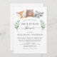Woodland Animals - Bear, Racoon, Fox Eucalyptus Greenery Botanical Watercolor Spring Gender Neutral Baby Boy or Baby Girl Baby Drive By Baby Shower at a Distance Invitations on white background - includes beautiful and elegant script typography with modern botanical leaves and greenery for the special Mother to Be celebration.