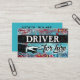 Colourful arty Driver business cards in turquoise, aqua, red, yellow. Driver for hire business cards.