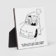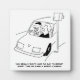 Speeding past a speed camera. Wife questions why her husband has to say "cheese" every time he drives past a speed camera. Traffic control cartoon. Driver smiles at Safety cameras whilst driving past, just as someone posing for a photograph would do. Funny Plaque.