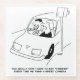 Speeding past a speed camera. Wife questions why her husband has to say "cheese" every time he drives past a speed camera. Traffic control cartoon. Driver smiles at Safety cameras whilst driving past, just as someone posing for a photograph would do.
