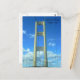 This postcard features a very unique view of driving across the Mackinac Bridge in Michigan.