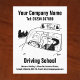 Driving Lessons Driving School Cartoon Design to Personalise. Reverse left blank for you to add your own text if required.