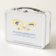 This is a standard metal lunchbox that appears to work just fine. We designed this box ourselves with an uploaded photo and custom text on the front and back. It looks absolutely beautiful except the front of the lunchbox is not centered like it shows in the photo. The print borders don't align with the inset flat part of the box where the preview photo online showed it perfectly centered in there. The back looks nice and centered though.