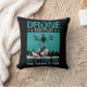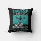 Drone Test Pilot funny saying throw pillow with teal and white on a background of black that you can change to whatever colour you want. This humourous drone theme pillow reads Drone Test Pilot If I Duck You Should Too!