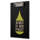 One huge iconic yellow drop, holding light brown text "IN NEED OF NEW PROJECT". Solid background colour can be replaced.