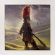 Beautiful AI-rendered digital artwork square puzzle features redhaired Druid Warrior Princess in Celtic green rolling hills.