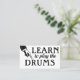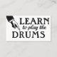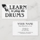 Cool vintage Learn To Play Drums business cards in black and white but you can change the background to any colour you like! Drummer musical instrument instruction business cards.
