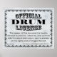 Official Drum License. There are many activities involving various equipment, such as operating an automobile, aeroplane, etc., that require specialised training and licenses. Making music is something that usually requires training: lessons, practice, and rehearsals. Shouldn't it be required of the prospective musicians that they receive a license to operate the equipment, i.e., their musical instrument?