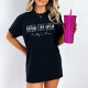 Introducing our Drum Line Mum t-shirt, perfect for high school band moms! The minimalist design features repeating font of "Drum Line Mum" in white text on a black t-shirt and has optional customisable text underneath. Made with high-quality materials, this t-shirt is comfortable and durable for everyday wear. Show off your pride for your child's passion with this stylish and eye-catching t-shirt. Order now and become the ultimate Drum Line Mum!