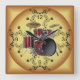 Drum Set ~ Musical Scroll ~ Golden Background ~ Square Wall Clock