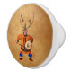A northern shaman, wearing buckskin clothing and caribou (reindeer) antlers, performs a drumming ritual to communicate with spirits and travel between realms. The shaman is superimposed on an old brain tanned leather background image.
