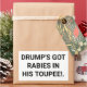 DRUMP'S GOT RABIES IN HIS TOUPEE. Comic Splash-Art sticker-design by Jeff Hankamer at Artjunkhaus