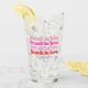Get the party started with this Drunk in Love Bachelorette Party Retro Pink Beer Glass Favour. This trendy design features the phrase "Drunk in Love" in a stylish retro font, with plenty of room for customisation with the bride's name and the date or location. Perfect add some fun and flair to your event.