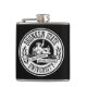 The flask itself is fine. It’s a cheap flask, obviously bought in bulk, however am prepared to overlook that. Given that it is a personalized item, I would have liked to have seen gift boxing instead of the generic packaging. Terrible printing, and/or quality. It’s a cheap, tacky vinyl. It is not cut straight and is also applied in a way that it is overhanging the bottom, causing the glue to catch on items and it will eventually roll and tear, damaging the wrap.