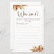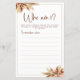 Embrace the rustic charm of autumn with our Dry Pampas Grass Who Am I Game Card, perfect for boho bridal showers and themed gatherings. Adorned with golden accents, this whimsical card captures the essence of bohemian elegance, adding a touch of natural beauty to any event. Let the soft, muted hues of pampas grass set the tone for a delightful guessing game that will enchant guests and create cherished memories.
