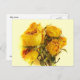 This lovely postcard features a still life composition of exquisite dried roses on a yellow background. The petals range in colour from pale yellow through gold to a deep orange apricot.