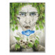 Watercolour painting of a birch dryad with intense eyes holding a morning glory