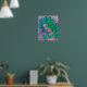 Poster featuring colourful fantasy painting, Forest tree spirit - dryad. Beautiful woman with green and violet birch leaves as her hair. Fantasy / surreal art, imaginary portrait. Pastel painting, soft pastels on paper, 43 x 49 cm, 2020