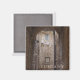 Souvenir photo magnet of an alley in Tuscany with laundry hanging to dry in front of a brick wall in Italy with the text: 'Tuscany'.